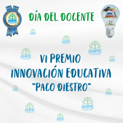 NOVEDADES VI PREMIO INNOVACIÓN EDUCATIVA 2025 Por admin octubre 8, 2025 Escrito por admin octubre 8, 2025 Celebrado nuestro VI Premio Innovación Educativa «Paco Diestro» en la edición 2025, el pasado 4 de octubre con motivo del Día Mundial de los Docentes. 0 Comentario 0 FacebookTwitterPinterestEmail admin Previo post Funcionarios en Prácticas. Memoria Prácticas EEMM 2025 e Información MUFACE, nuevos mutualistas. Te puede interesar Funcionarios en Prácticas. Memoria Prácticas EEMM 2025 e... septiembre 11, 2025 ANPE reclama mejores condiciones laborales y de conciliación... septiembre 11, 2025 «Cada vez son más los docentes que nos... septiembre 11, 2025 VI PREMIO INNOVACIÓN EDUCATIVA 2025 junio 18, 2025 FECHAS. Adjudicaciones de vacantes Interinos Maestros y EEMM.... junio 3, 2025 MUFACE. Periodo ordinario de cambio de entidad sanitaria.... junio 3, 2025 CURSOS HOMOLOGADOS POR LA JUNTA DE COMUNIDADES DE... mayo 29, 2025 BOLETINES INFORMATIVOS mayo 21, 2025 Especial Oposiciones 2025 CLM mayo 20, 2025 Delegación Provincial Educación, Cultura y Deportes Ciudad Real mayo 20, 2025